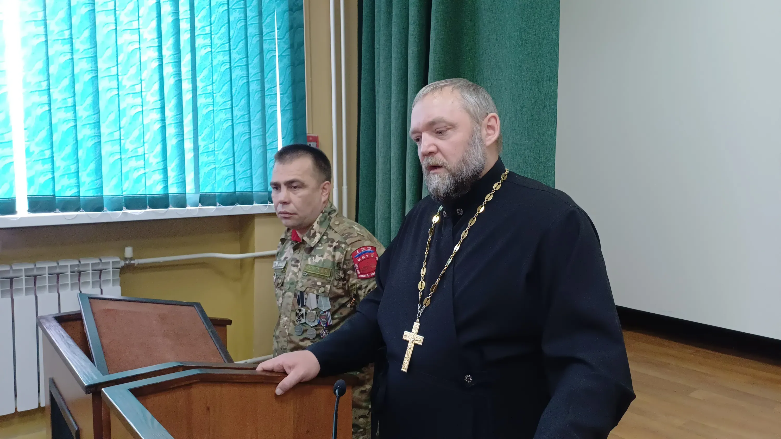 На встречу со школьниками вместе с Вето пришел также настоятель Храма святых апостолов Петра и Павла отец Александр. С самого начала СВО он вместе с прихожанами Храма принимает активное участие в сборе помощи нашим бойцам. Его сын Артем тоже несет службу на передовой, поэтому отец Александр прекрасно знает о том, как важна поддержка тыла. Об этом тоже говорили на встрече. Не обошли вниманием и такую важную тему, как пособничество терроризму. Пока наши бойцы, рискуя жизнями защищают Родину, противник очень умело вербует нашу молодежь, и, пользуясь неокрепшими детскими умами, вовлекает их в свои игры. К сожалению, такие случаи, когда подростки по указанию нацистов, к примеру, поджигают объекты на железной дороге, имеют место быть.