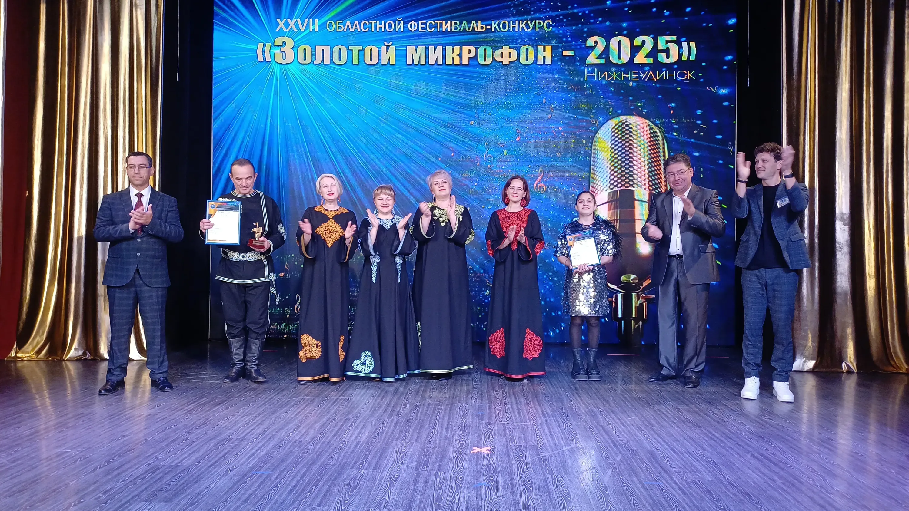 По итогам первого дня состоялось награждение – были определены победители в каждой возрастной категории в номинации «Художественное слово», а также названы коллективы, которые были признаны жюри лучшими в номинации «Малые формы театрального искусства». Так, дипломом лауреата третьей степени награждён образцовый вокальный ансамбль «Дети солнца» из Нижнеудинска, дипломом лауреата второй степени - детский образцовый театр «ДиВо» из Чуны. Лауреатом первой степени стала Театральная студия «Браво» из села Казачинское. Обладателем главного театрального приза «Удинская голубка» стал народный театр «Современник» из Казачинско-Ленского района. Второй конкурсный день «Золотого микрофона» прошел под знаком вокального мастерства. На сцену Дворца культуры вышли более 60 участников – солистов, дуэтов, трио, музыкальных коллективов. Таланты приехали к нам со всего Приангарья и предварительно уже прошли первый отборочный тур, в котором всего было подано 135 заявок. Только половина из них по результатам работы жюри прошла дальше в конкурсном испытании. Десятки творческих номеров в этот день представили вокалисты жюри, а после лучшие из лучших приняли участие в большом гала-концерт, где были озвучены имена победителей и раскрыта интрига, кто же стал обладателем главного приза, гран-при 27-го конкурса «Золотой микрофон». В этом году впервые за всю историю этого вокального соревнования жюри было принято решение дать сразу две главных награды – настолько поразили участники своим вокальным мастерством компетентное жюри и выбрать из них одного победителя было просто невозможно. Гран-при конкурса в этом году получили фолк-группа «Купава» из Саянска, выступившая с народной песней в эстрадной обработке, и наша землячка, 15-летняя воспитанница Нижнеудинской районной детской школы искусств Рита Погосян, подарившая зрителям красивый эстрадный номер.