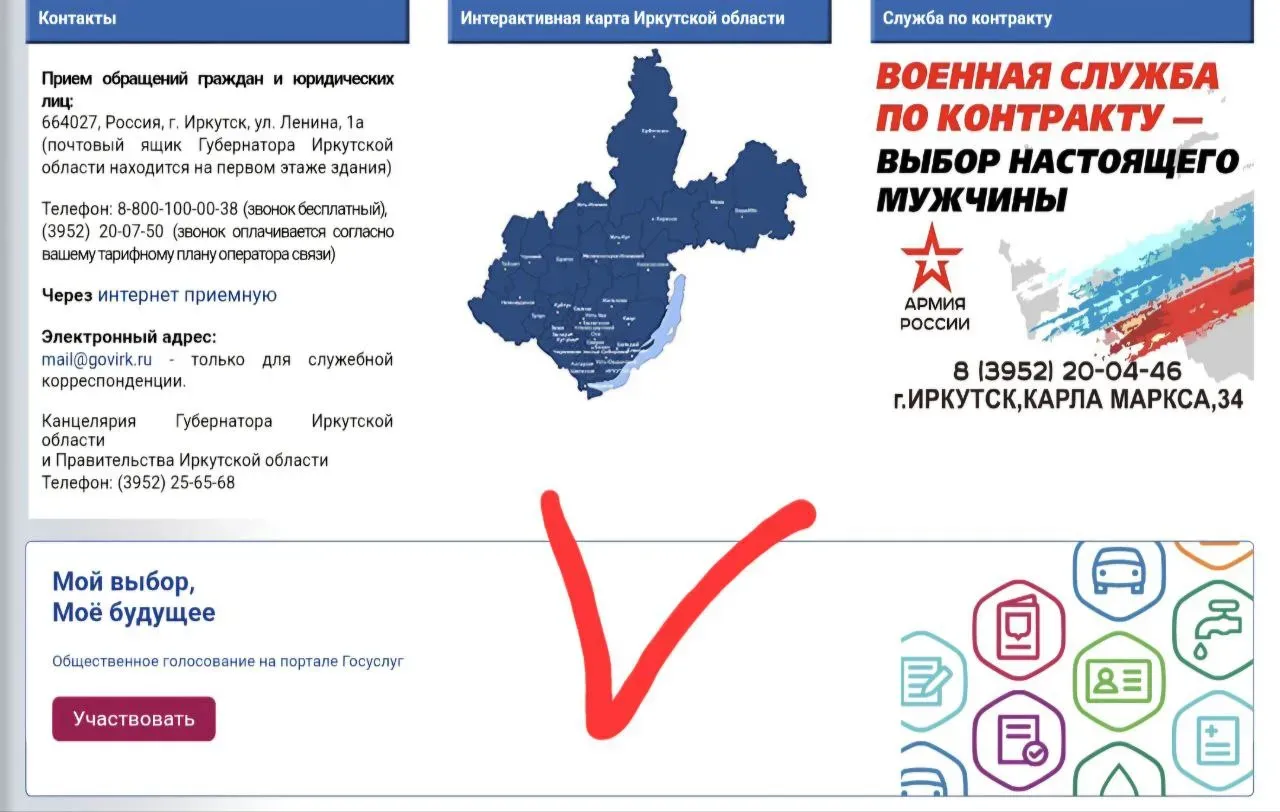 На официальном сайте Иркутской области проводится онлайн-опрос населения по оценке эффективности деятельности руководителей органов местного самоуправления муниципальных, городских округов и муниципальных районов Иркутской области, предприятий и учреждений региона.