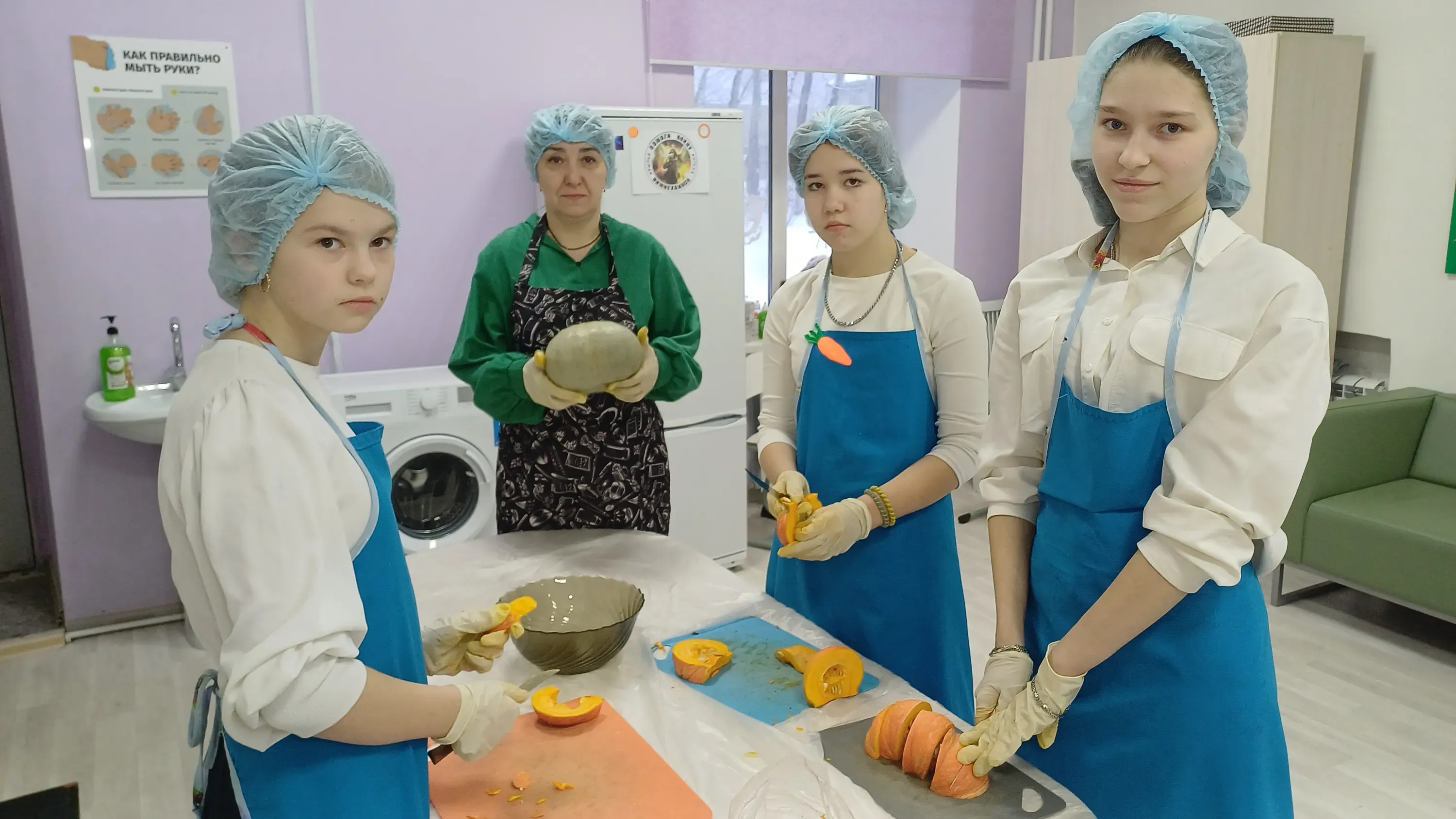 В кабинете технологии ароматно пахнет тыквой. Это девчонки, ученицы 7-го класса, делают заготовки. После того, как тыква, кстати экологически чистая, выращенная на школьном участке, будет очищена и натерта на маленькие кусочки, сушеный, измельченный овощ передадут волонтерам Полевой кухни группы «Помоги воину». В итоге получится каша с тыквой - вкусный, сытный и полезный обед для бойцов специальной военной операции. Ведь именно им отправляются сухпайки, в приготовление которых и дети, и взрослые вкладывают всю свою любовь и заботу.