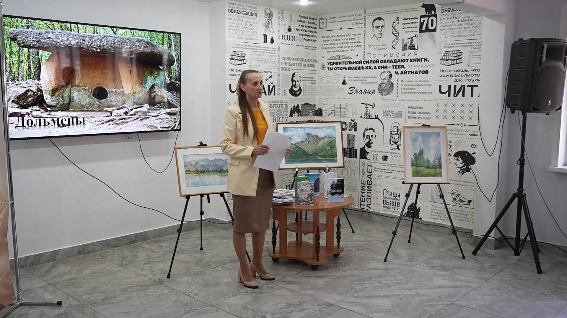 В городской библиотеке проходит презентация моей седьмой книги. Это сборник с моими стихами «Бабье лето». Я пишу стихи уже много лет, собрала их и переиздала, - говорит Елена Чайко. - Сегодня мы собрались в уютной атмосфере. Я очень благодарна работникам библиотеки за это. У нас будут размышления по поводу смысла бытия, смысла жизни. Для чего мы приходим в этот мир? Кто мы? О временах года. Сегодня коллеги, художники рядом, поэты, писатели, музыканты.