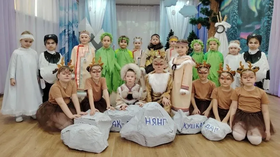 Юные театралы показали на сцене своего музыкального зала постановку по мотивам сказок народов Тофаларии «Легенда о Золотом олене и храбром Мэргене» и рассказали о том, насколько важно сохранять свою родную культуру и речь.