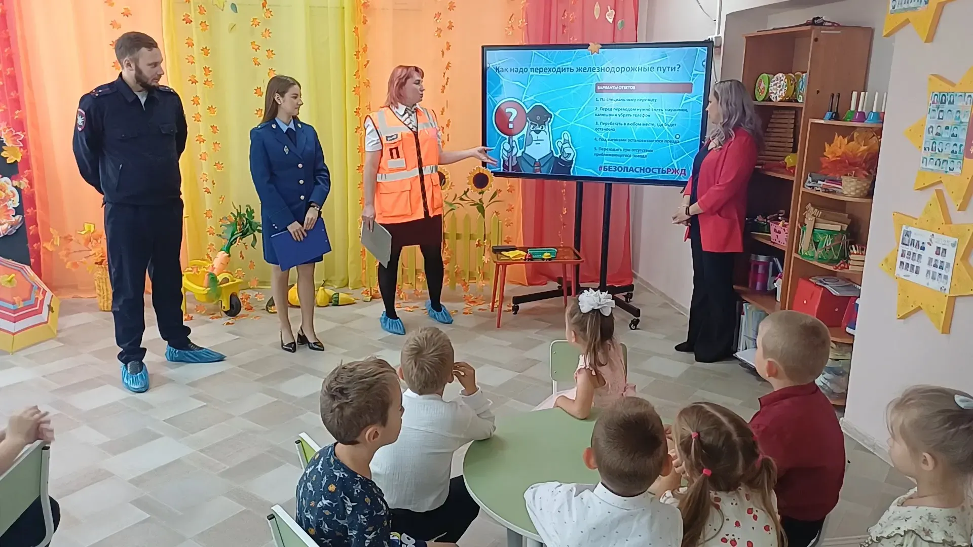Воспитанники детского сада №172 внимательно слушают задания взрослых. Им нужно показать представителям важных и серьезных профессий свои знания о железной дороге и самое главное о правилах безопасного поведения на ней. Этой теме всецело была посвящена викторина, которую для малышей провели представители Нижнеудинской транспортной прокуратуры, Дистанции пути и Линейного отдела полиции. Железная дорога для всех, а для детей особенно – зона повышенной опасности. И эти слова – не попытка напугать. Это факт, подтвержденный многолетней печальной статистикой, в которой, к сожалению, есть немало случаев и с участием несовершеннолетних.